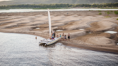 В этом году стояли в прекрасной компании катамаранщиков )))